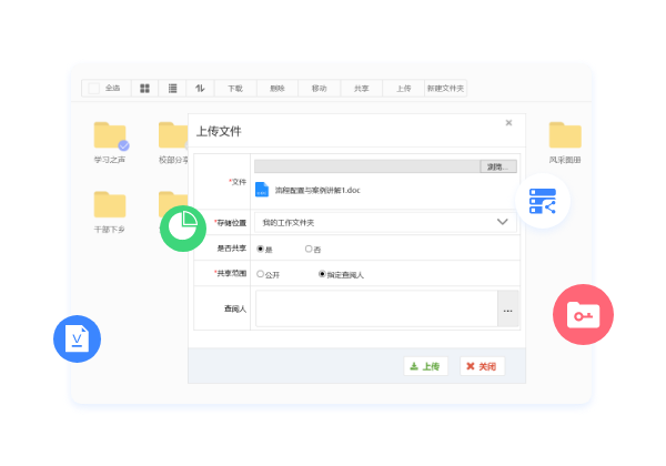 实时共享客户资料、员工手册、培训文档、资质证书、证件照等文档,提升整体管理效率。