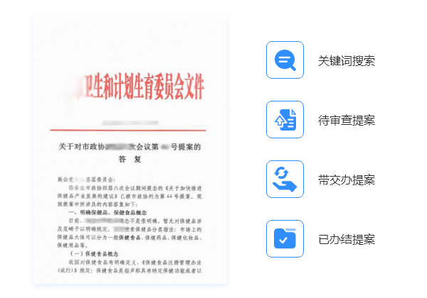 为政协委员、政协以及办理单位搭建一个工作和交流平台,实现了提案的提交、交办、承办、审核、答复、催办、督办全流程业务的信息办公自动化管理,从而提高办理提案的效率和准确性,解决了政协委员提案办理工作量大,办理效率低等问题。